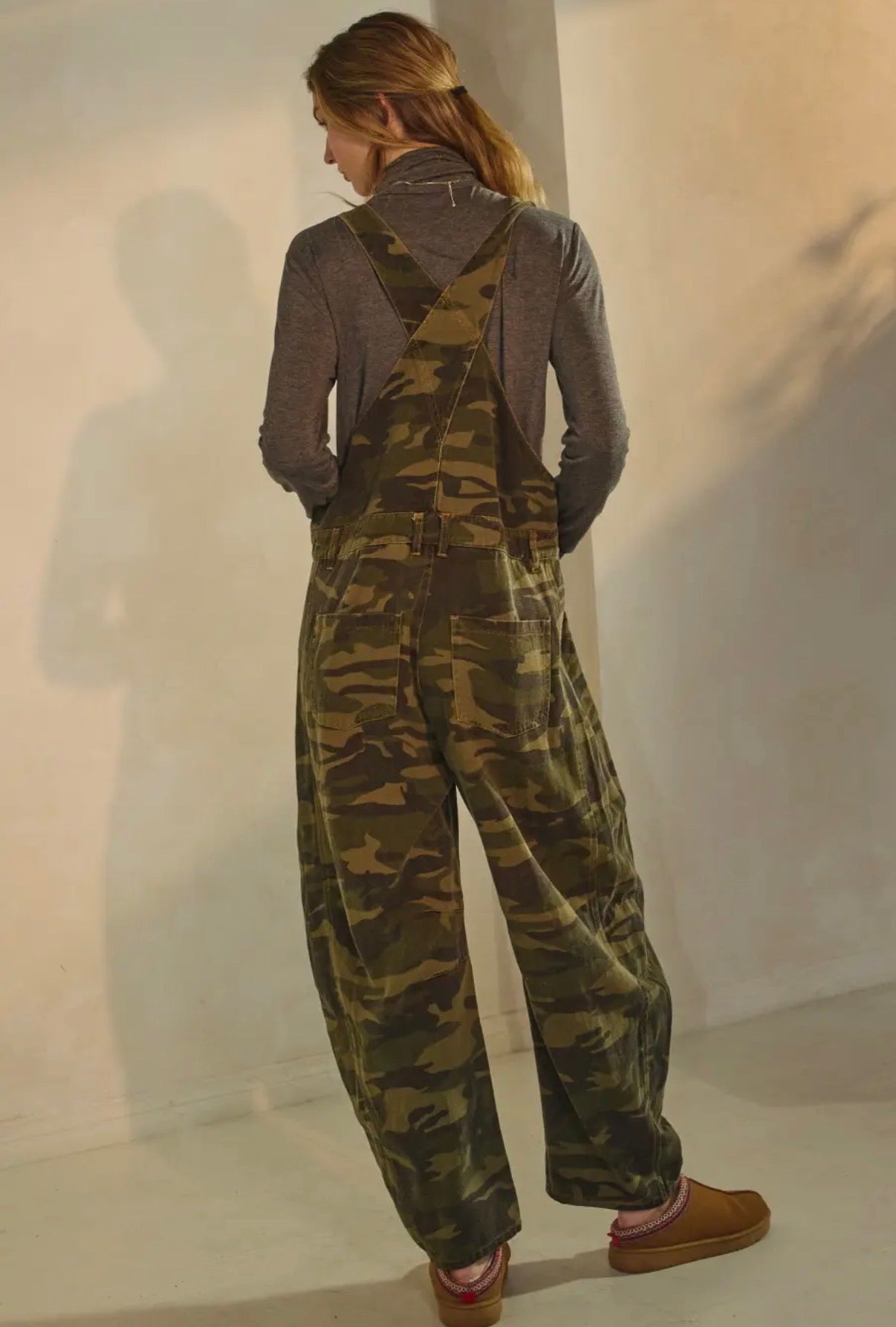 Camo denim barrel pants overall jumpsuit.