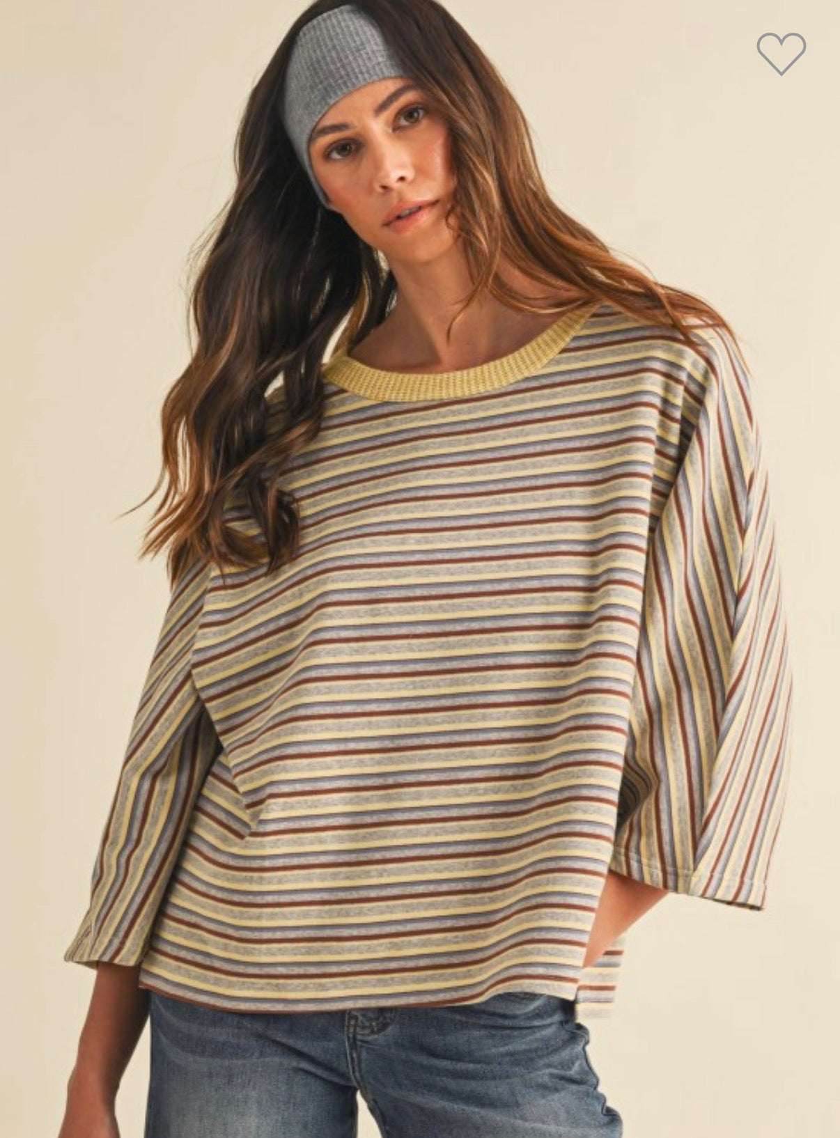 SOFT TOUCH MULTI STRIPE DOLMAN SLEEVE KNIT TOP
