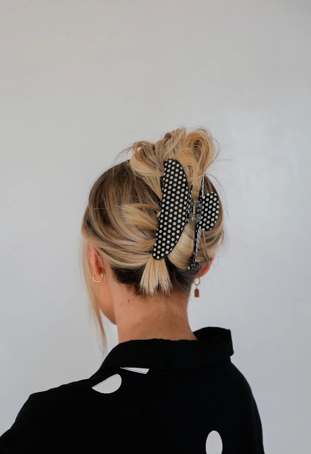 EVERYTHING! This claw is functional with a strong spring and long enough to hold all your hair or wear as a half up half down. This claw is textured and comes in 2 different size options.