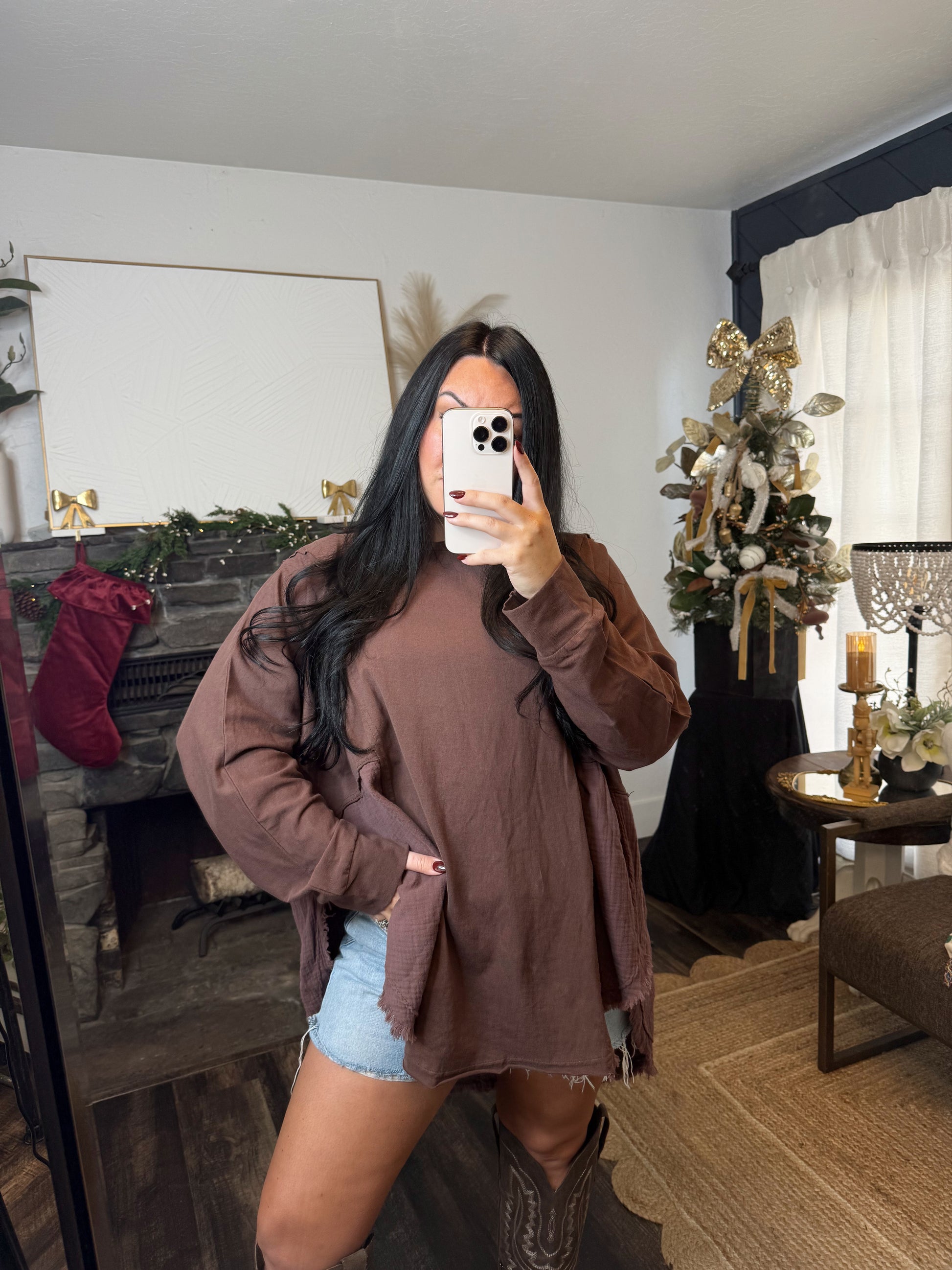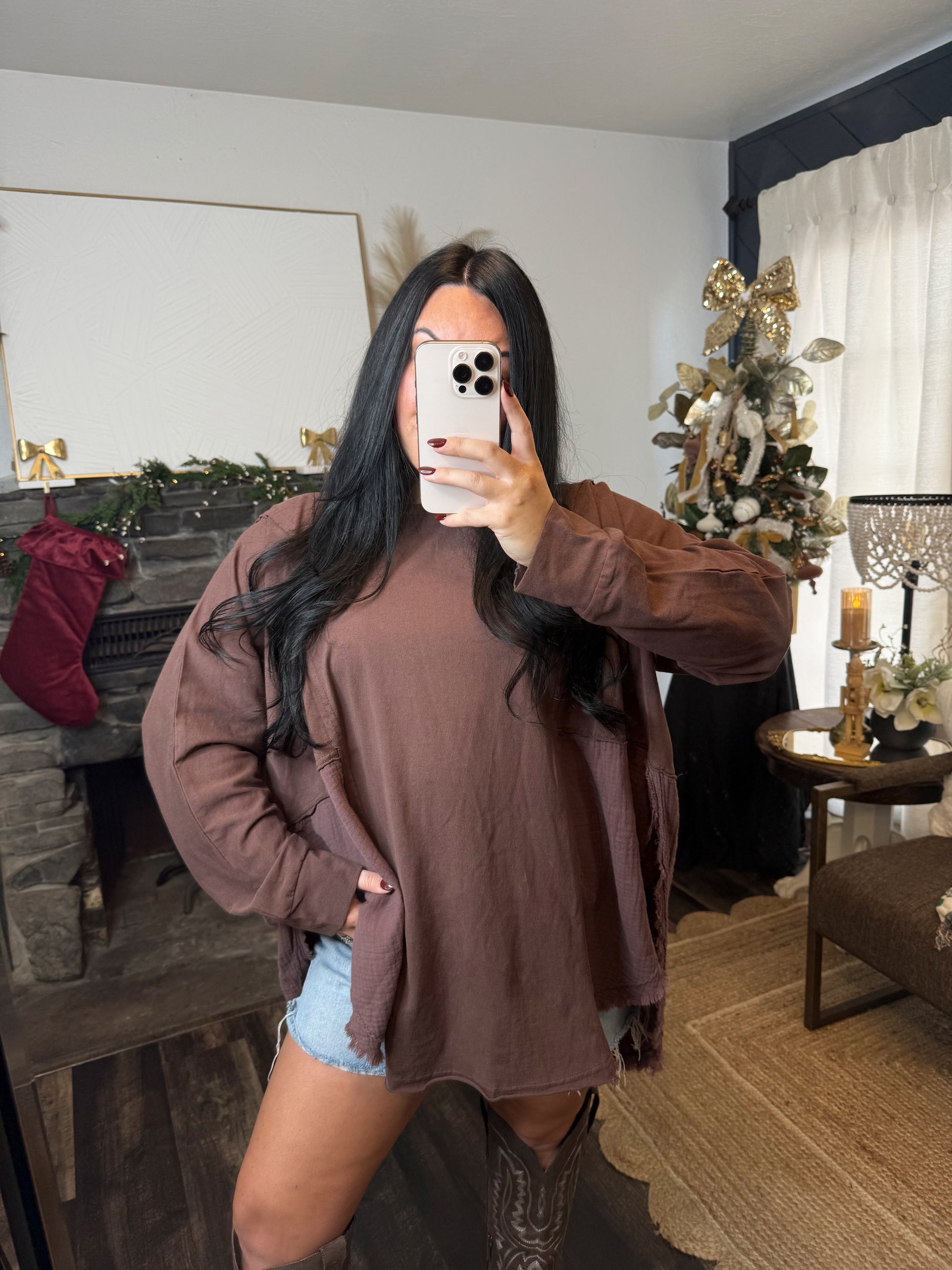 Oversized Chocolate Side Slit Top